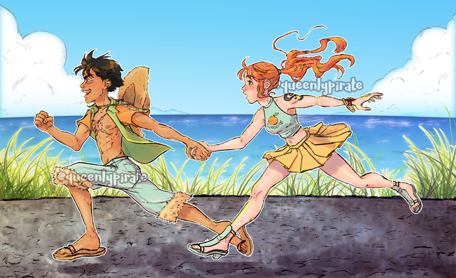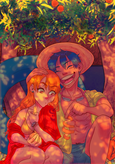 i absolutely love the soft shadding and light effects! especially her hair! it glows beautifully! and also luffy's eyes! they shine so bright!<3 very well done!