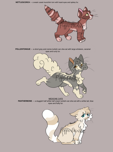 Female Medicine Cat Can see visions in fire while awake. Loves kits more than anything.