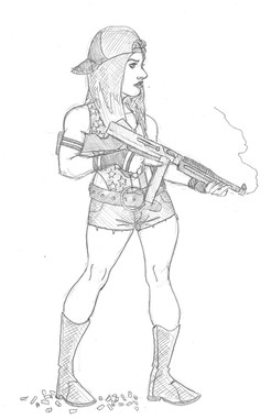 “For as long as I can remember, the golden rule has been ‘family comes first.’ The second rule was ‘never take s*** from others.’ Thats how I was raised, and thats how me and my parents ran our family garage. When I was 16, my mom passed away. For the next couple of years it was just me and dad. He taught me all there was to know about fixing everything that ran on wheels. Though I was never quiet on his level. In his spare time he taught me some of the things he learn during his time in the Marines. I found this a lot more interesting. Learning to shoot straight, punch hard, and blow shit up. And to avoid getting caught with that last one. Thats how it was, all and all not to shabby. Until those f***ers started showing up. Demanding us to pay them protection money just because they decided we were part of their turf. We’d been able to handle thugs and would-be-tough-guys before. But these guys were playing for keeps. After one too many of our refusals, they showed up and just started shooting. Daddy told me to run and I did. One of the thugs tried to catch me, but I put him down with our ol double barrel shotgun. That was the first time I really killed anyone. When the fighting seemed to stop and I saw them driving away, I went back to the garage. There I found my dad. All shot to hell and laying in a pool of his own blood. He died holden my hand as we said our goodbyes. Cried me a river that night. The police did nothing to find the ones who did this. Either they were stupid, or they were on these guys’s payroll. Either way, it was clear I had to take matters into my own hands. Cause you don’t f*** with family. I started tooling up with all the guns me and my daddy owned, along with crafting all the makeshift weapons that could slash and go bang that I had materials for. I also made a few ‘special’ modifications to my pickup truck. A few bits of armor here. Some sharper edges there. Sure as hell wouldn’t be street legal, but sure would pack a wallop. Afterwards I started combing the streets. Grilling up every low life I could find to get intel on where to find the bastards who killed my daddy. An angry woman with a crowbar can be mighty persuasive like that. Eventually I found where they held up in an old warehouse. When they were all gathered there I rammed through the doors in my newly armored truck and let all hell break loose. Ran them down, set off a few pipe bombs, and tested out just how effective a pair of hood mounted flame throwers were. Got most of them that way. When the others scattered out of the trucks reach, I was forced to get out and started to fill those f***ers with as much lead as I was packing. Their boss was the last to go. I beat him to a bloody pulp with that there crowbar I mentioned earlier. When it was all over I had quiet a few cuts, bruises and bullet grazes. But I was still living. Didn’t think I’d actually planned on surviving come to think of it. Not sure what to do I just sat there a while before combing around the place until I found a list of names an locations for other gangs and mobs like this one. The sort of scum that would cause the same pain and suffering I’d been through. They had a lot of ordinance still laying around the place. So I figured, why stop here.”