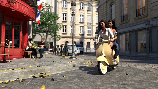 #3d #females #friends #friendship #girls #night #scooter #dazstudio