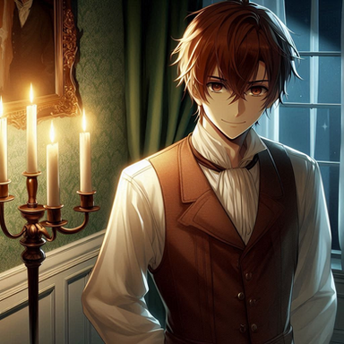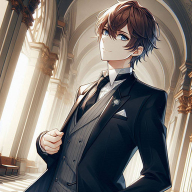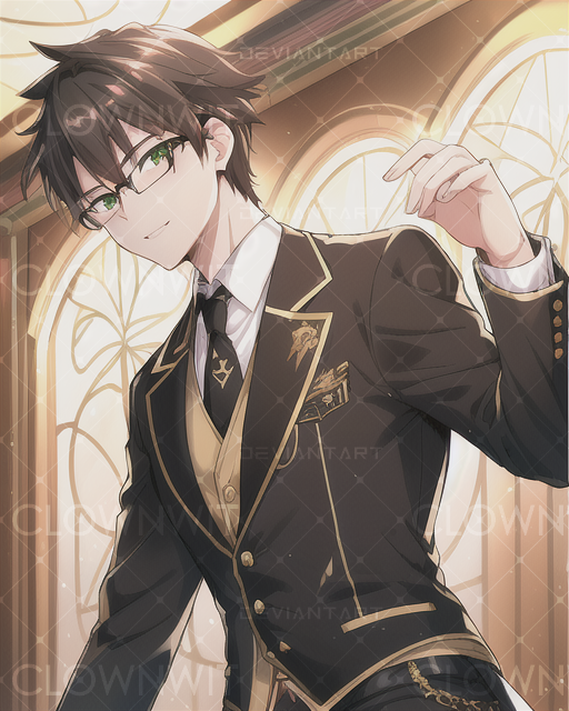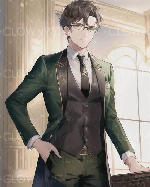 #ai #anime #black #book #character #glasses #gold #green #male #reading #suit #white