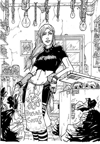 First, thanks everybody for the comments on the scraps of "Miss Doomsday" I posted recently. I read everyone of them and take them quite seriously. I decided to finish up and put together the second page for the re-do of "Miss Doomsday" I'm working on. The page above is the finished result.Let me know which you prefer, the original ([link] ) or the new one above. Let me know which you prefer, as I'm rather torn between the two, accursed indecisive soul that I am.