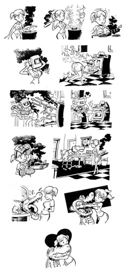 Thanks, CitizenWolfie. Your critique got me to take a second look at the page. I thought about making it only a focus on the clock but I couldn't help drawing Anne's body. Instead, I made it a bit more obvious that the cats resting on top of a clock.