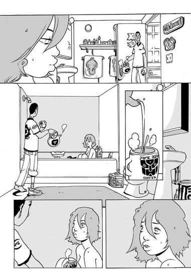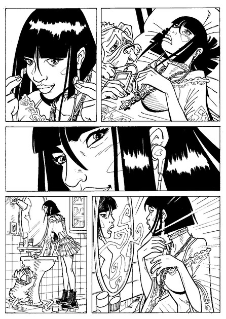 I love all of it. The middle panel especially. It's all the little details that make it so captivating, mixed in with your art style. You know, drawing a black and white comic is never easy, particularly when it is designed to have no colour. To make a page interesting in just white or black is really difficult. You make it look so easy. You are a very observational artist, and it comes across in your work.