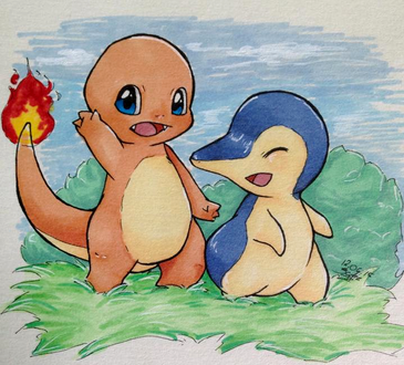 Aw they're pretty cute together! I can see Charmander helping out Cyndaquil almost like a big brother.