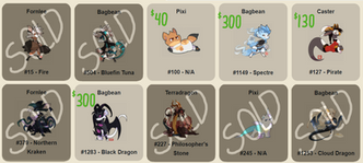 I DO NOT take art or points. I'd MAYBE consider Terra-Terrific, Sweet-n-Treat, or Sugaryu designs for trades, otherwise I'm only looking for USD.