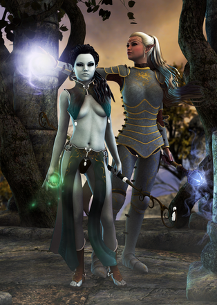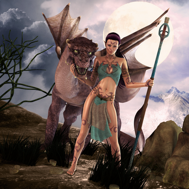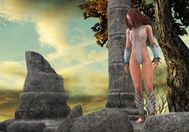 This is fantastic! The landscape has such a rich and subtle feel to it, and the direction allows you to feel a slight breeze. The skin tones are amazing as you have really brought this to life in such a big way. I can feel the bark on the trees and the motion of her arm as if I were there. The costumes are well played as is the hair with such detail.