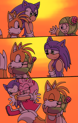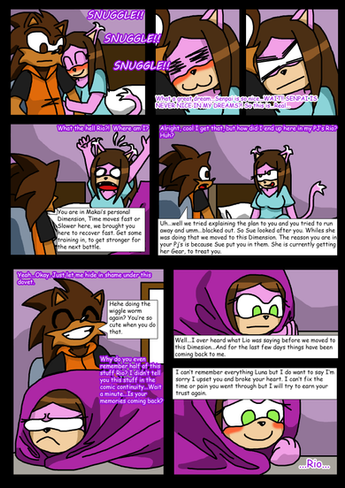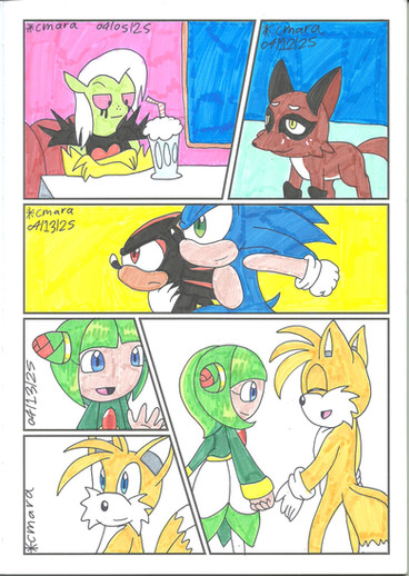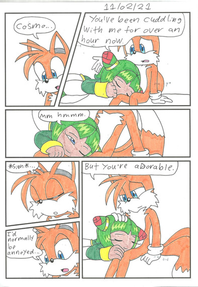 The girl then connected a body with a blue/pink dress on it to the head. She then placed green rose-like buds on the figure's head. She finally placed a pink amulet on the chest. The girl then said, "Watch." A black fox with green eyes and white hair and tips on his tails walked towards her and said, "Yes Mistress Cmara." Cmara said, "The ball of life please." Watch said, "As you wish." He handed Cmara a little glowing ball and she popped it into the figure's mouth. She then wrapped her arms around the figure and gave it a big hug. She then set it against the wall and she and Watch looked at her for a few minutes.