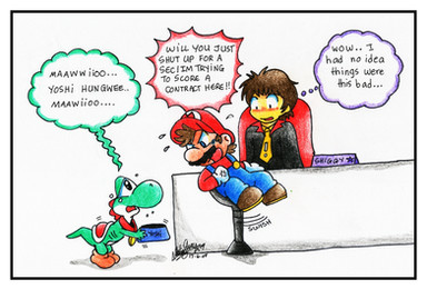 Rex: I'm not afraid of you anymore, Mari-Odor! (Mario now has large visible stink vapors from his armpits) Look, a new challenger is approaching!