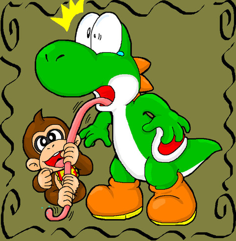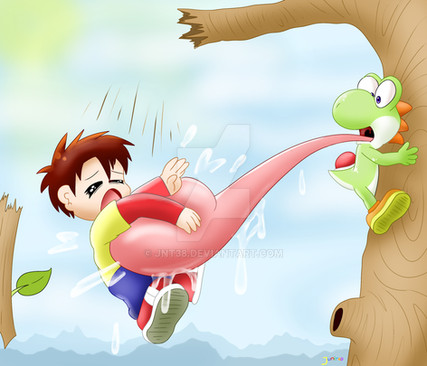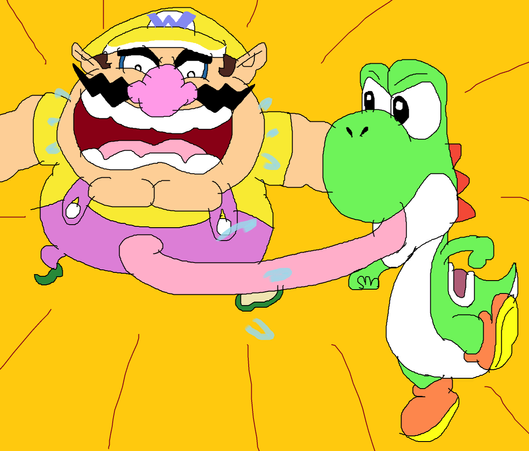 Ouchies baby Wario is pulling Yoshi's tongue until Yoshi's saliva comes out. Great Job sillysimeongurl.