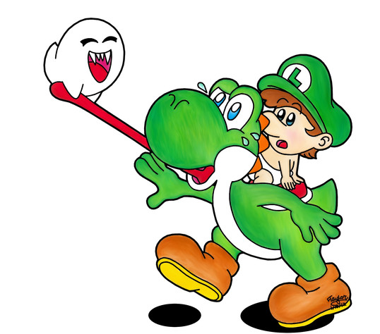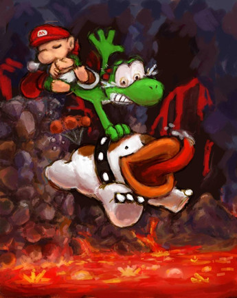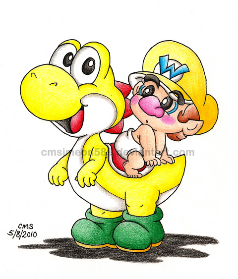 Just a few little critiques- Little baby Wario seems about to slip off Yoshi's tail. He looks like he's come completely off the saddle, heheh. And Yoshi kind of looks like he's missing a right wrist.