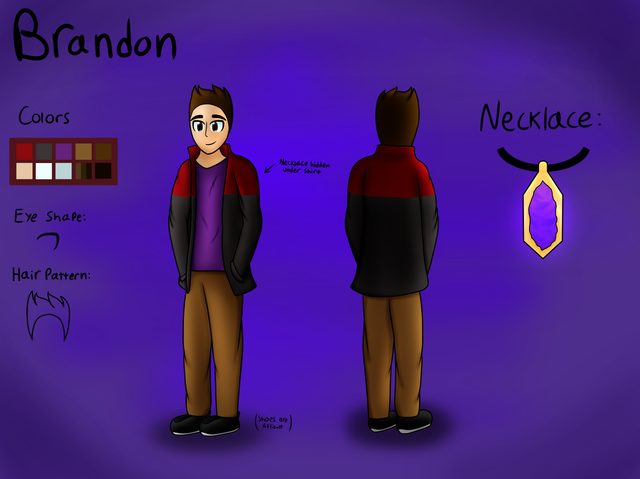 An updated reference sheet for Brandon! Figured all my characters could use an updated reference sheet because, well, goodness the old ones just make me laugh. So, yeah, a new reference sheet, even if it probably won't get much use. I didn't draw a back or side view since it would've taken me WAY longer to get these down, plus I think people are smart enough to figure that out on their own. Anywho, here's a description for Brandon:Name: Brandon