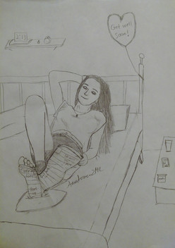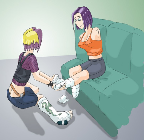 “My ankle is feeling better,” she says while rolling her foot slightly under the ice and bandages, “I don’t think I broke it again. But I am pretty sure I did my toe in.” She frowns and gingerly lifts her right foot from the ice. Yep, that one is broken alright. Just look at it. “And my wrists..well I can’t move either of them very well and they are throbbing like crazy! I don’t want to say, but.. I think I might have broken them too..” she pauses, and puts out a little frustrated sigh. “No matter what, there goes my season for sure. Hey,” She looks up at me with a pleading expression, “This is a lot to ask, but would you be able to drive me to the hospital?”