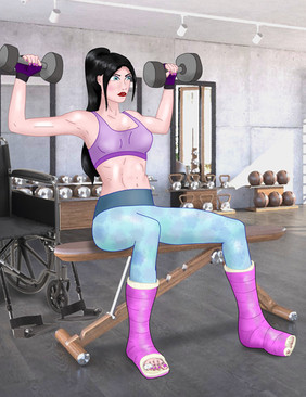A nice cast fetish-picture without casts. I like her tan lines, her sporty body and the background. Good art!