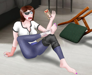 Raven gingerly picks up her legs and holds her bandaged toes in the air to inspect them. A few tears form that she fights back, looking at the bruised, swollen and somewhat crooked toes in front of her. "Maybe they aren't as bad as they look," she says unconvincingly, "I will probably be fine.."