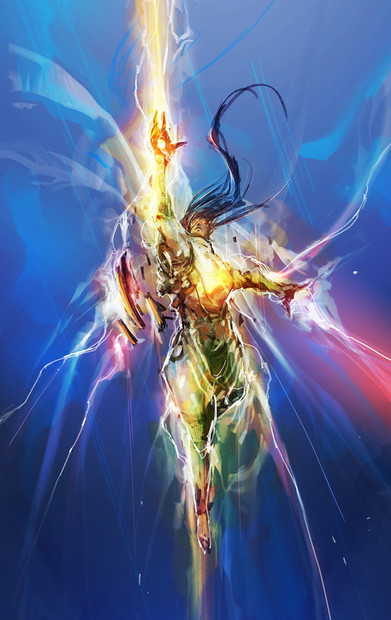 WOW! This is Amazing. Great use of perspective and colors. I like the dynamic pose.