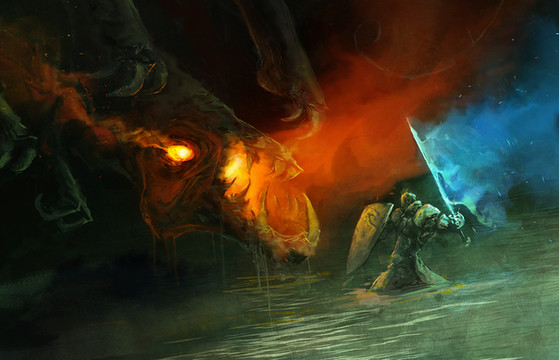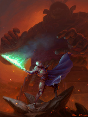 #battle #beast #creature #deity #demon #giant #god #knight #monster #sword #swordsman #titan #warrior #art #fire #commission #fantasy #illustration