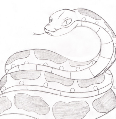 An interesting name for an interesting snake! Indeed, the model for drawing him was Kaa from the Jungle Book, yet he retains a lot of traits from real-world pythons, especially the Burmese Python! He is very sweet and caring, and, unlike many of my friends, he doesn't try to eat me!Related content