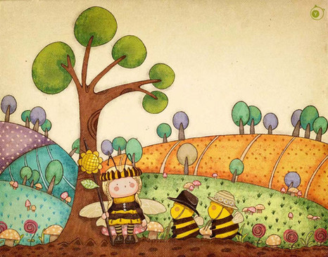 The Garden serie( includes Birdy in scraps) is just an illustration technics tryout, it now decorates walls of a friend of mine The originals are in A4 format, bee and the beetle are apart.Maybe Garden will be a calender in the future -Birdy may be for April, Beetle is for May(there is a beetle lookalike means May in Turkish) and the Bee is for June