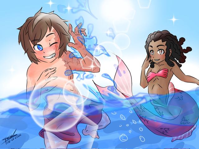#boy #cartoon #cute #mermaid #ocean #sea #simple #water