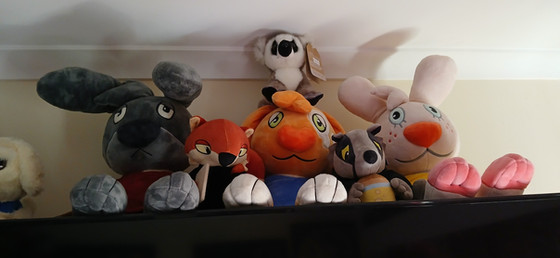 1- Figura de Bloodspill en papel.(Luego dare el tutorial)2-Peluche de Perrito golden retriever.