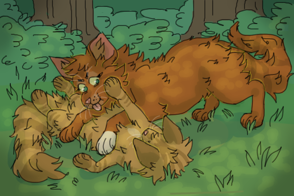 something i forgot to upload for father's day :'Dbehold my long-overdue updated designs for mudfur and leopardstar...he's definitely the kind of dad that would reminiscence about her being a kit a lot