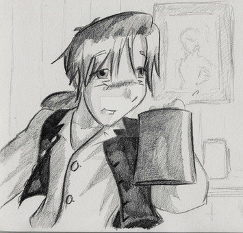 He turned to look at the empty chair and full mug of ale across from him. His partial smirk faded, his hands holding his own full mug. His fingers trembled around his drink.