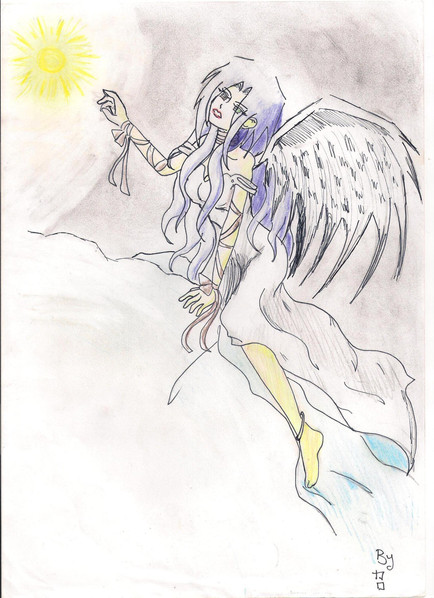 Very good job, I do believe the anatomy of such a picture is probably what I'm most fascinated in, it looks quite well done to me, as is most of the folds on the clothing. I'm curious about her expression though, it looks as though something out of our line of vision is surprising her, a pleasant surprise though, Iām sure!