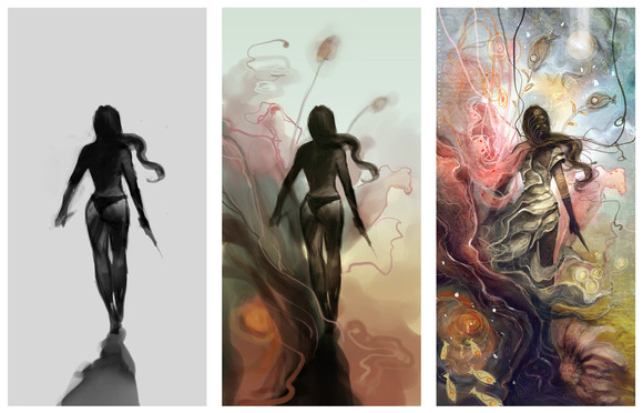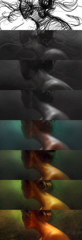 I find this tutorial and I have a question. I tried to do a work with grey color base, like this but how did you color it. I don't understand the "I use the gradient map for the color", how did you do, is your brush on a special mode (you know saturated, lighten, product (I don't know the word in english, sorry) ?