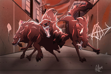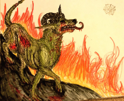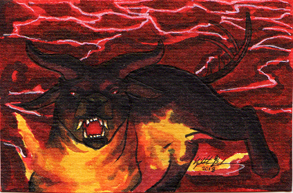 ooooh! Wow. That's powerful! He kinda looks like a hellhound. I like the strong colour & contrast.