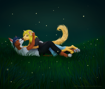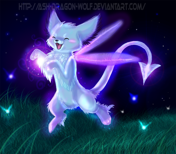 awww this looks so lovely and pretty how you drew her posed like that with her tail around her and the colours and the small bits of light around her are really beautiful to look at too nice work and keep it up n_n