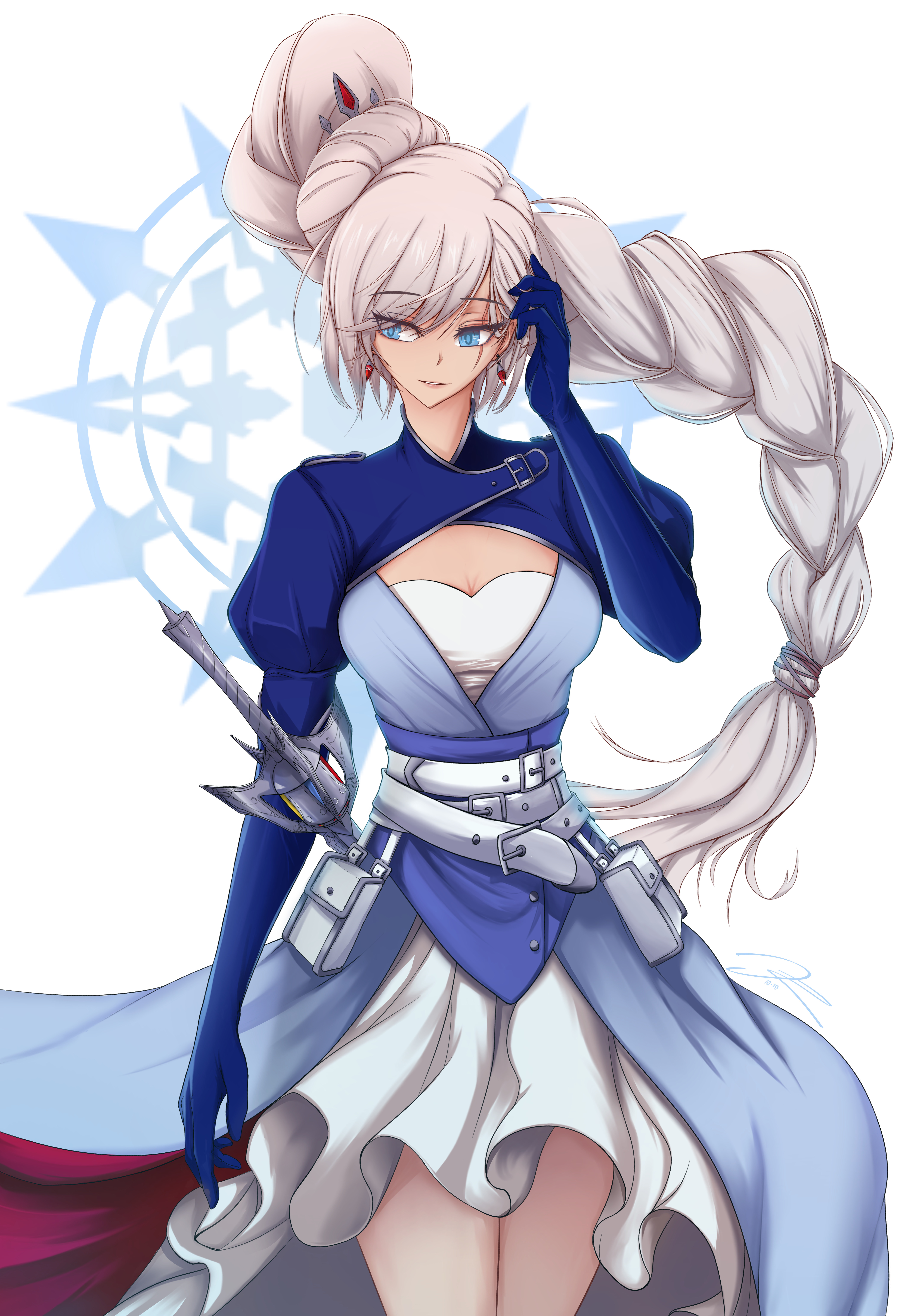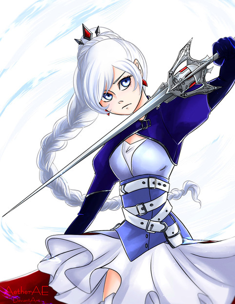 I like her outfit, but doesn't the skirt seem a bit too long? I mean, there are characters fighting in these in RWBY, but it feels uncomfortable for Weiss' fighting style. Still, i love the design.rwby by rooster teeth.