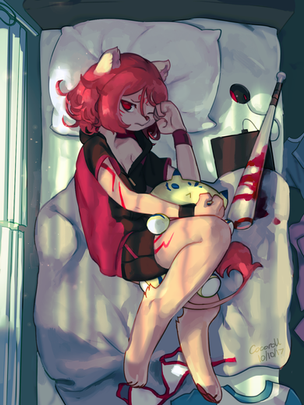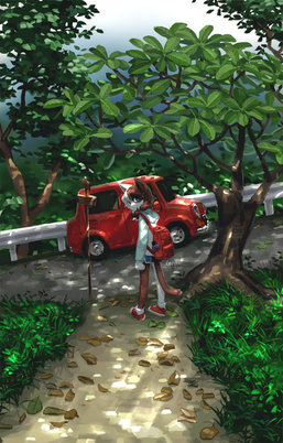 A full backgrounded artwork in a while huh?Originally from a doodle I didn't plan to make it painted digitally at first. xD Without plans, I made everything sooo orange until during the background process when I began to add cyan. I thought that would ruin the entire thing, but luckily it didn't, even make the art more perfect, I'm happy \;v;/Β