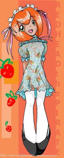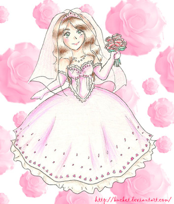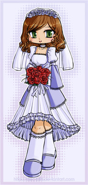 The original title of this picture was "Never a bride" but I felt that sounded much too bleak. The irony was there, but I think it needs much black to warrent such a title. Instead, I present, One True Love. Filled with my love and hope for the future. Here's Cody in a cute wedding dress of my design. His hair is cut a little shorter than usual in this one, so it has a tendancy to curl up at the ends, but I think it makes for a nice effect. Also, on the back is a qausi bow-obi sort of thing. With a bit of a background i'tll be a little more obvious how light and see-through the material is.Line Art: Alison of DrgnDen.com