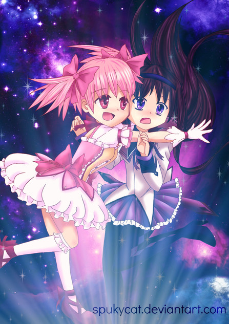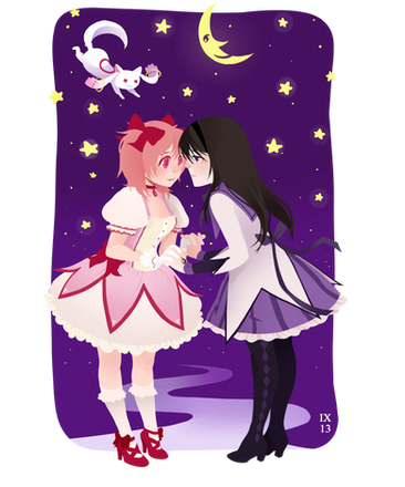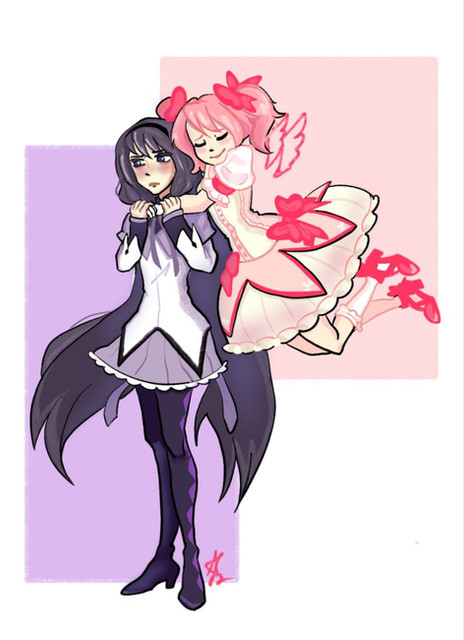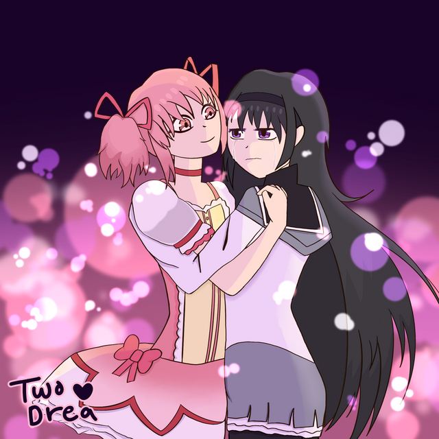 #fanart #frills #homura #hug #madoka #shadow #animestyle #cellshading #digitalart #digitaldrawing #magicalgirl #animemangagirl #madokamagica #girlshugging