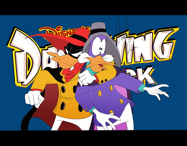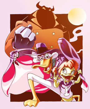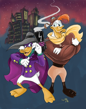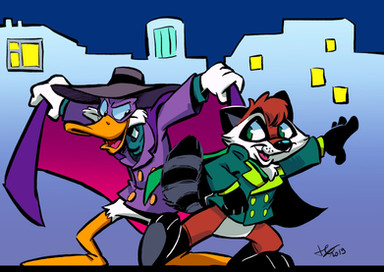 Darkwing Duck and his daughter Gosalyn. Based on this super adorable sketch by Toby Shelton: [link]