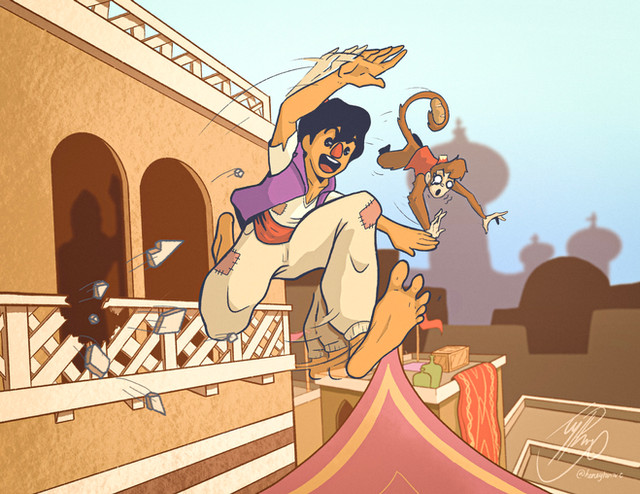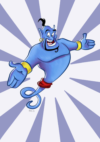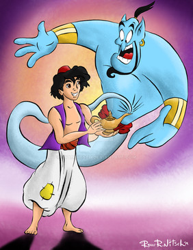 This is my first time ever drawing Aladdin. I feel I either made his head too big for his body or his arms too small. I don't know, but something is off. At least Genie looks good.