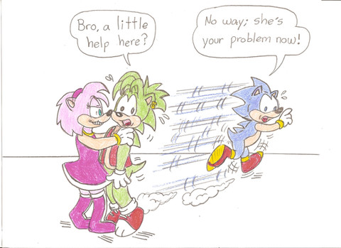 Yeah, and if they did become a couple we would loss all those humorous scenes of Sonic running from Amy like the plague!