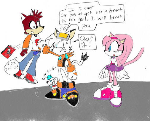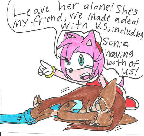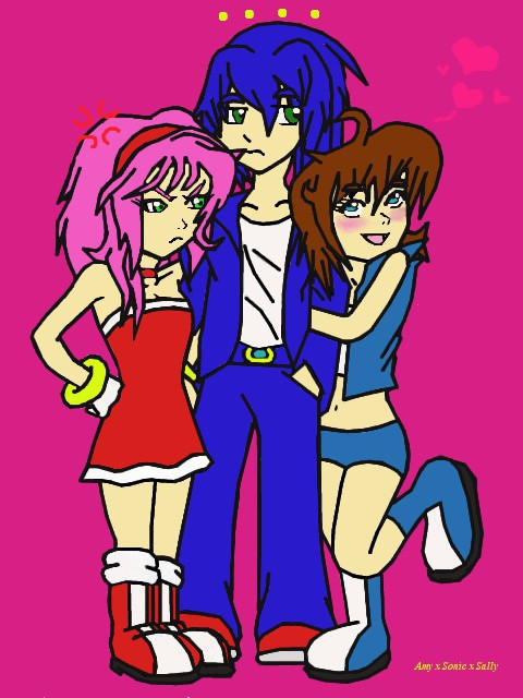I think it's funny how some fan people make them fight and diss amy or sally. It's so dumb! In the comics, Sally and Amy are actually friends. And does it really mater who sonic's dating? Face it, we only really play the video games and read the commics to see sonic save the day. True, it's fun to see him date someone, but that's not the point. And fan people don't have to make it seem like that's what it's all about. I love this pic anyway and it's awesome!!!!