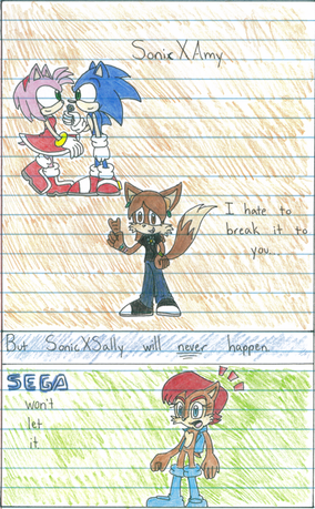 Yes and a lot of the things people use to bash Sally are true for Amy as well. And yeah I don't see Sonic as liking Amy that way, but I can sort of see SonAmy as Sonic has shown SOME evidence of having felling for her in some versions (although these are few and far between).