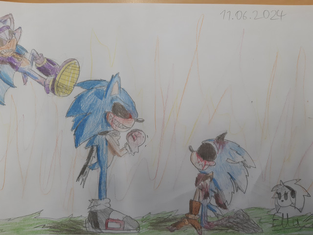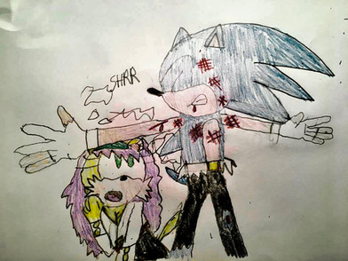 My entry to 's contest for her Sonic comic Ghost of the Future (a great series, by the way. Check it out!)This really won't make a lot of sense if you haven't read the comics. Basically, Sonic is a ghost and is haunted by the memories of the deaths of his friends. I was going to draw Knuckles but was too lazy.