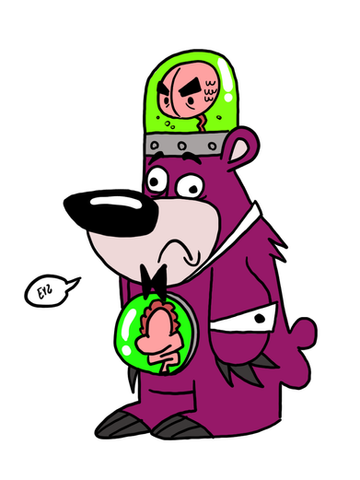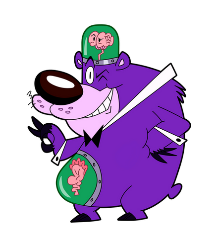 Here is the show's main character, Hector Con Carne, an super villain who lost everything but his brain (and stomach) in an explosion. He now uses the bear, Boskov, as a replacement body, which doesn't always go so well.