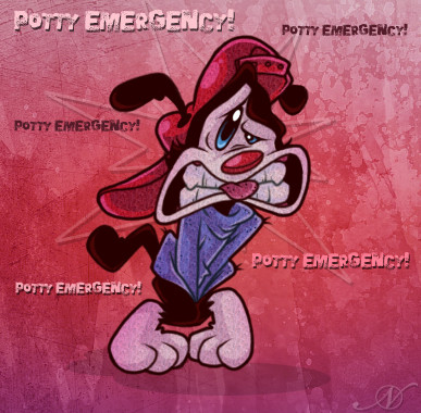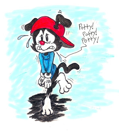 I drew this while we were on our way to Virginia for vacation. Guess what I had to do really badly.Anywho, this is based on an episode of Animaniacs called Potty Emergency, where all poor Wakko wants to do is go to the bathroom but he can't find a place to do so. I think we've all be there before....