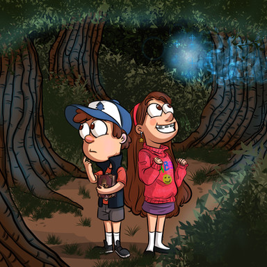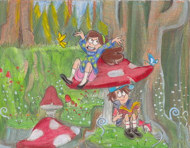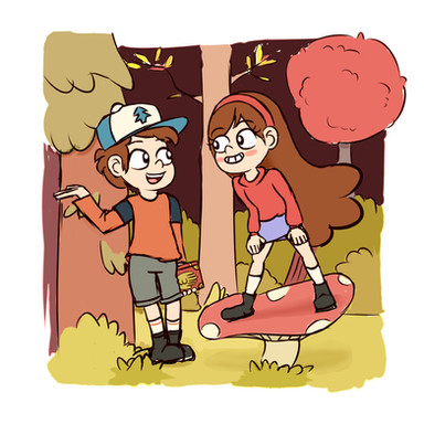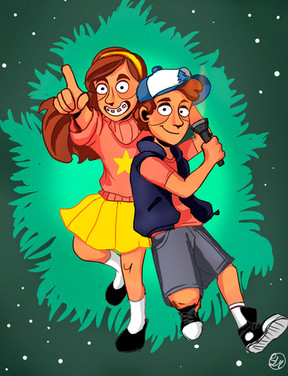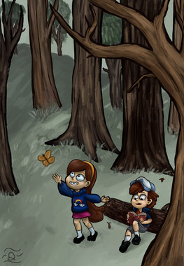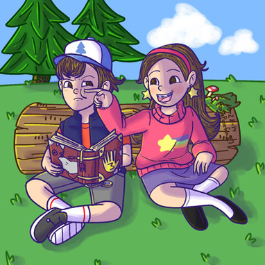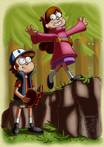 Just felt like doing some GF fan art. I just love these two! No joke, if I ever have kids, I hope they end up at least half as awesome as Dipper and Mabel. Especially Mabel.Gah! The background took for-freaking-ever to do and it still came out crap. Darn you Gravity Falls and your beautiful backdrops that take real talent to reproduce!