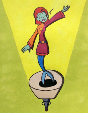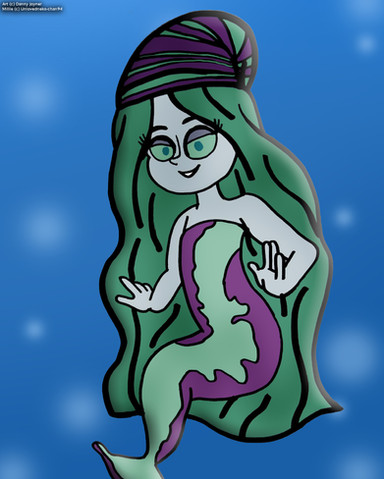 This cool mermaid looks great as she is listenning to the music.