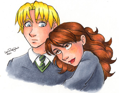 Hello, I made a fanart of Hermione Granger and Tom Riddle from the books Harry Potter ! I was inspired because I'm reading fanfictions by Winterblume and I love it (especially Ultima ratio and Please, Save Me) !Tom is such an asshole, but weirdly, this couple works for me <3