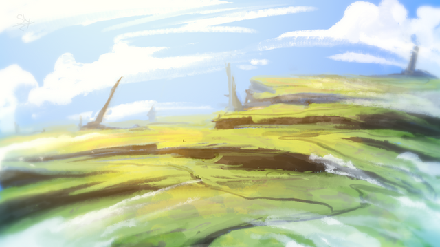 Update: I recently realized (with some fresh eyes from a friend) that the sky and overall mood was too dark and flat so I did a paint-over to cheer it up a little bit.