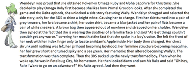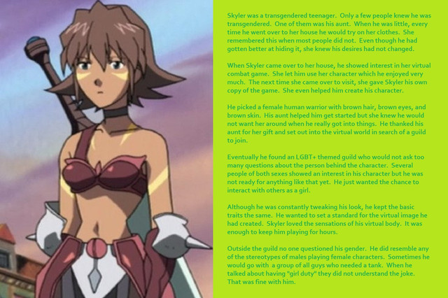 Anyone playing the game would see him as Xena, a girl in her early teens wearing clothing from centuries ago. Anyone else would see him as he truly was, a boy in his late teens wearing modern clothing. This might confuse anyone suddenly removing their virtual glasses but no one wanted to do that. Virtual animals could appear at any moment and the only way they could catch them was by wearing their virtual glasses.