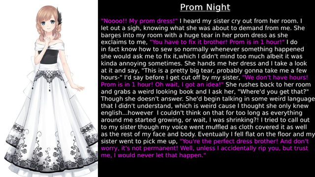 "No one comes here without wanting something. I know the perfect dress for you! It will highlight your legs and make all the boys desire you."