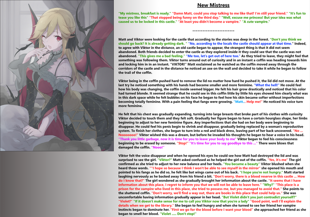 Harley did not need long to decide. She lived by herself, had no family, no friends, and no one she really cared about. Harley told Octavia she wanted to be a fempire. Octavia was pleased. Her life had also been a lonely one. Most of her victims yelled at her for what she had done and none of them ever wanted to join her before.